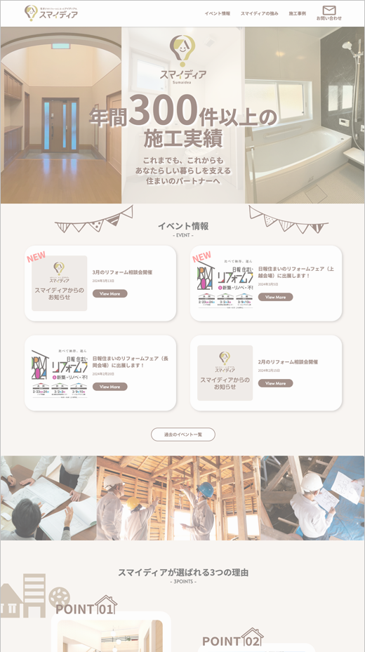 パソコンとスマホ、同じデザインでの対応ももちろん可能ですし、最新情報の掲載は、更新が簡単で発信力に優れているSNSの埋め込みをおすすめしていますが、ワードプレスでの制作もご相談ください。